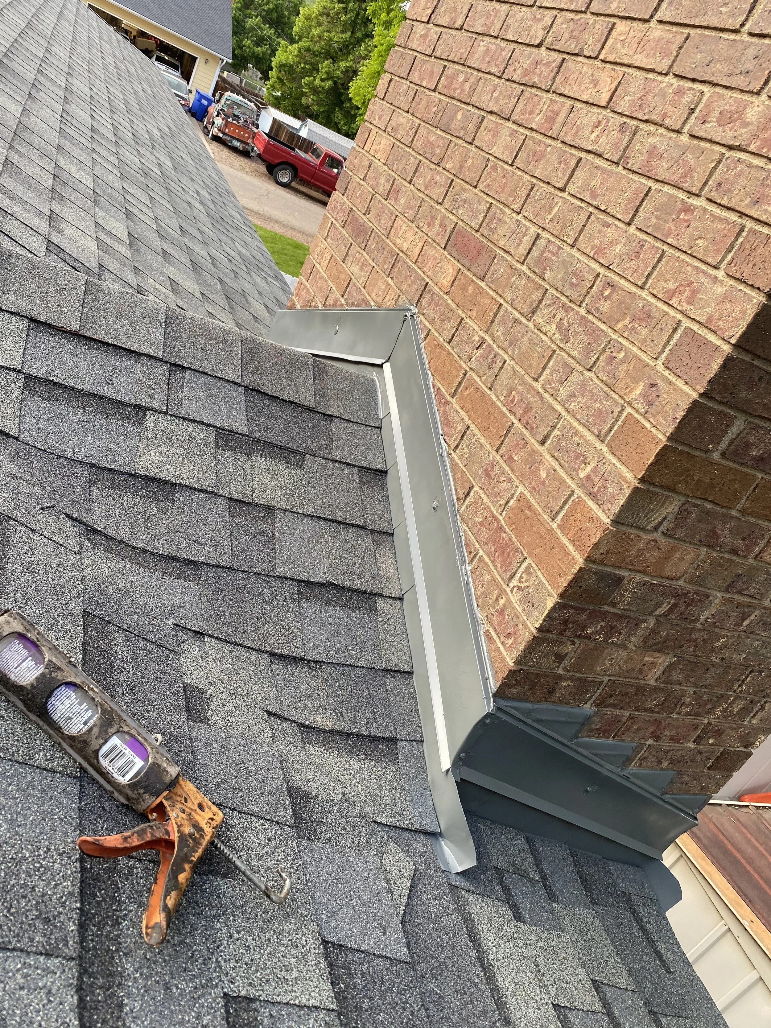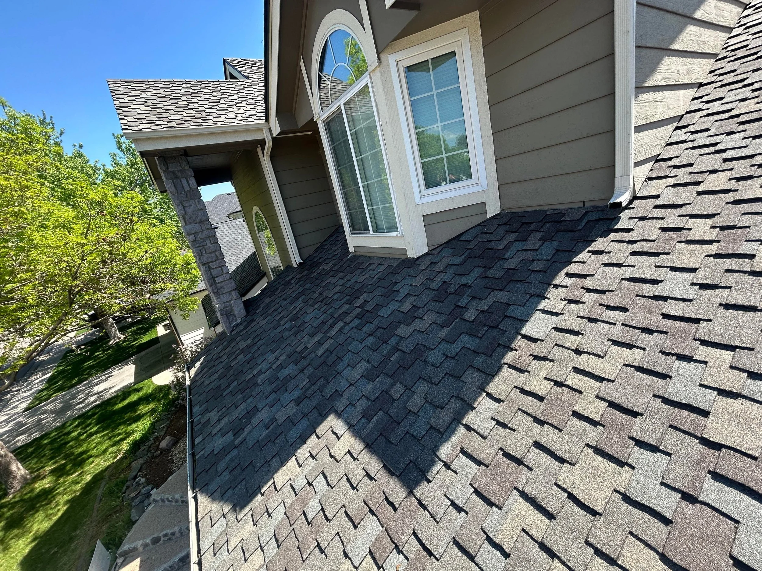 "Newly installed asphalt shingle roof on a residential home that features high-quality architectural shingles, providing durable protection against Colorado weather and improving curb appeal."